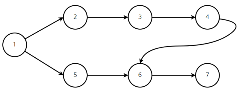 위상 정렬 : 1 -> 5 -> 2 -> 3-> 4 -> 6-> 7
