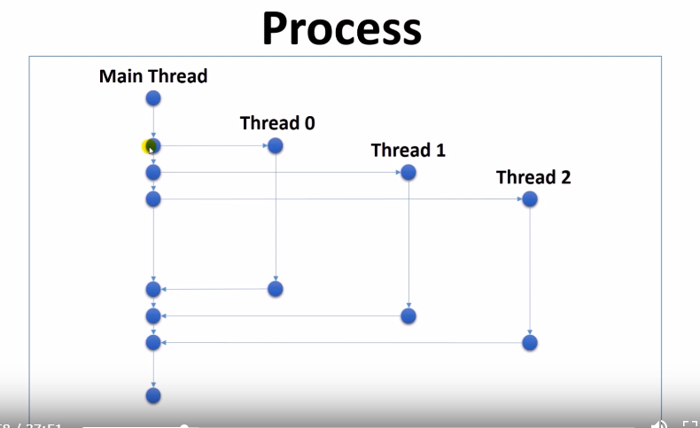 전산학적인 용어가 아닌 그냥 주된 thread라고 생각하면 된다. 여러 thread에서 나눠서 하는 것이 좋겠다 해서 여러개의 thread에게 일을 시키는 것이다. main thread는 그들에게 일을 시킬수 있다. 원칙적으로 보자면 하나하나 일을 시키는 것이 특징이다.